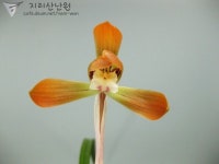 중국보세란(대륙묵란) 중에서도 접판류의 변화의 예를보이는 아주특이한 東洋蘭 -다설기화-개화모습속에 주판부판과 안쪽점들이있는곳을 혀"라고얘기하는데 해석하자면-여러개의혀를가지는 기형의개화모습...
